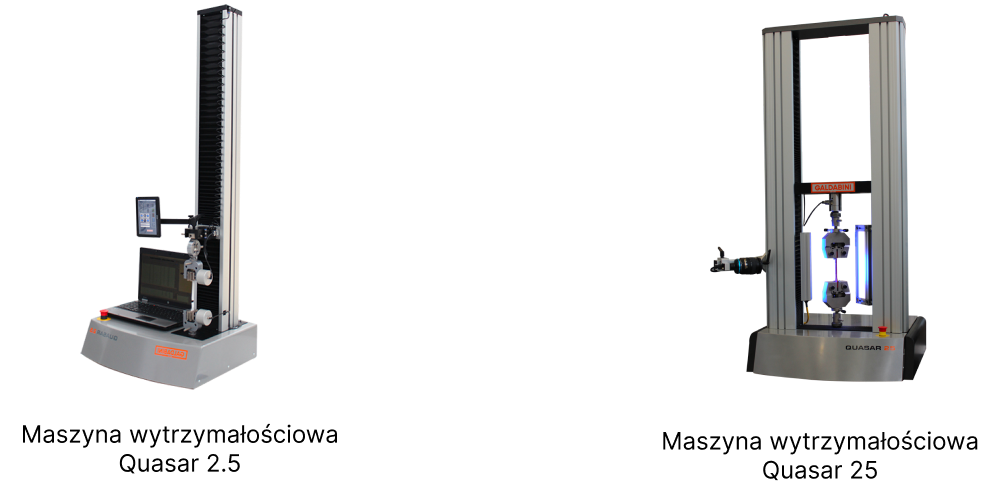 Nasze Laboratorium wyposażonej jest w maszyny wytrzymałościowe firmy Galdabini. Są to maszyny Quasar 2.5 kN i Quasar 25, które możliwiają wykonanie badań wytrzymałościowych zgodnie z powyżej opisanymi metodami. Nasze urządzenia spełniają lub przekraczają wymagania standardów: UNI-EN-ISO 7500/1, ASTM E4, i analogicznych. Dodatkowo posiadamy wyposażenie takie jak ekstensometr model Micron, wykorzystywany do dokładnych pomiarów odkształceń liniowych różnych materiałów. Dzięki jego zastosowaniu możemy dokładnie określić takie parametry jak: granicę plastyczności i jej wydłużenie, wytrzymałość na rozciąganie i współczynnik odkształcenia.
