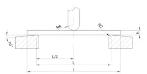 Próba zginania trójpunktowego polega na obciążaniu siłą w środku, swobodnie podpartej próbki